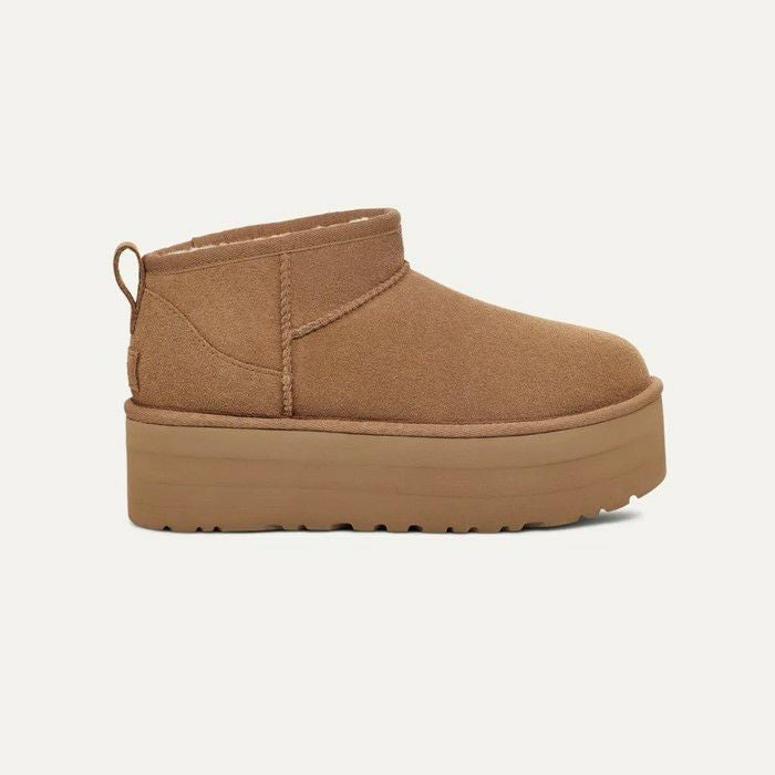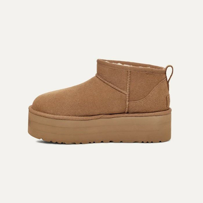 UGGのアイコニックな定番ブーツ約5cmのプラットフォームをプラスすることで現代風にアップデートしたClassic Mini Platform(クラシックミニプラットフォーム)を更にアップデートしたClassic Ultra Mini Platform(クラシックウルトラミニプラットフォーム)