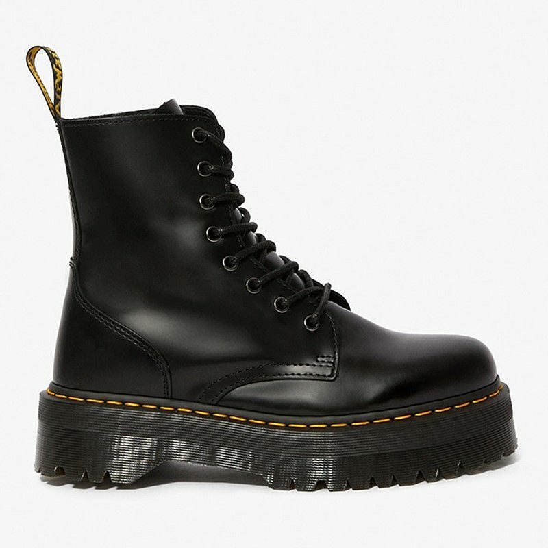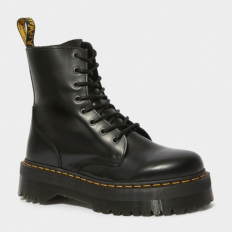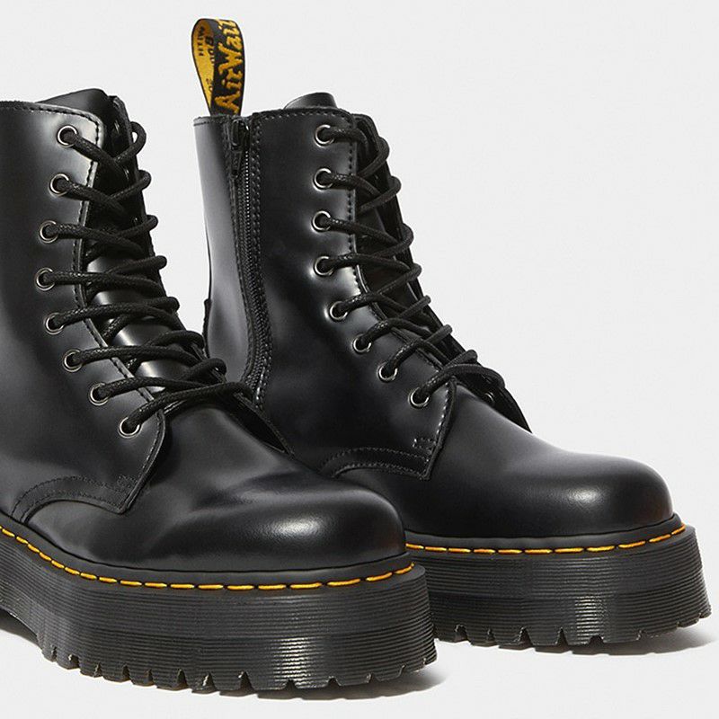 ドクターマーチンの定番8ホールブーツと厚底ソールを組み合わせた「ジェイドン」は、ボリュームのあるシルエットが特徴。