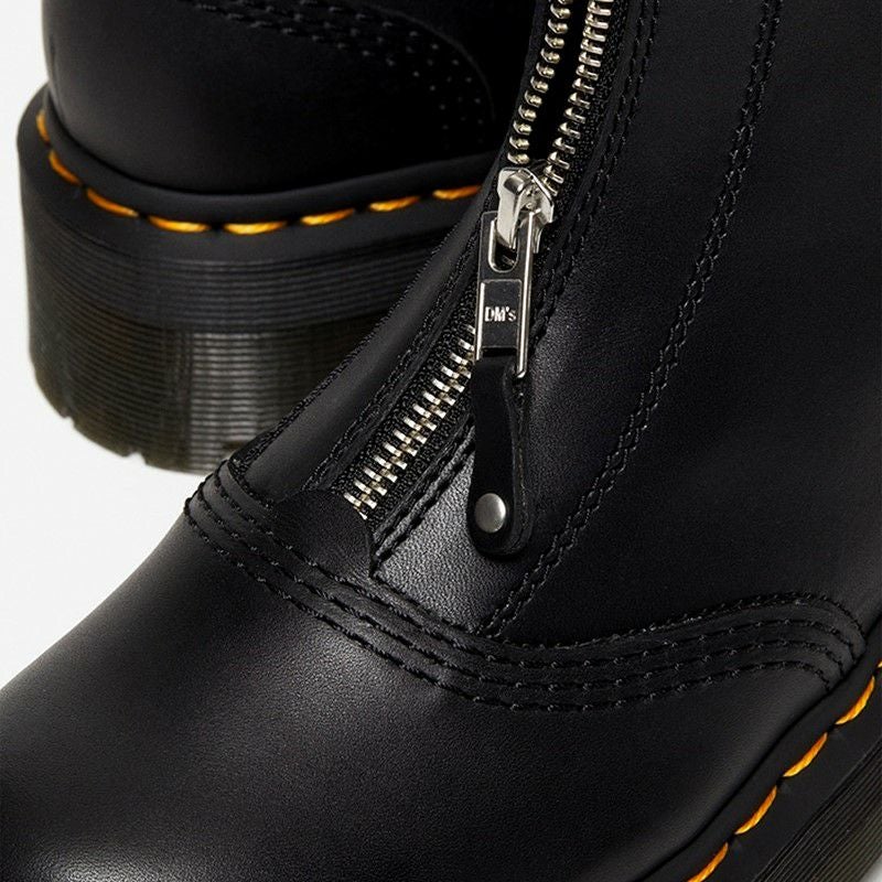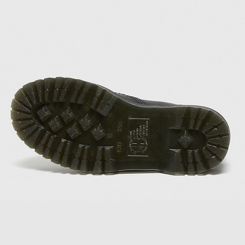 ブーツの履き口にはドクターマーチンのアイコニックなヒールループを取り付けて、ウェルトにはイエローステッチを施して仕上げられています。