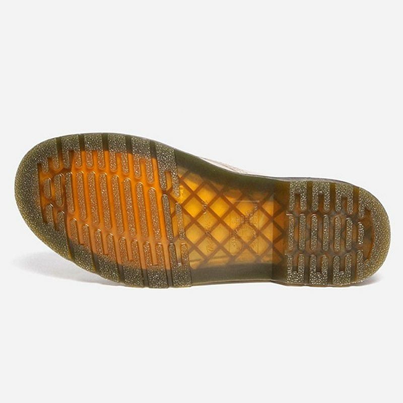 履き口にはドクターマーチンのアイコニックなヒールループを取り付け、ウェルトにはイエローステッチを施して仕上げられています。