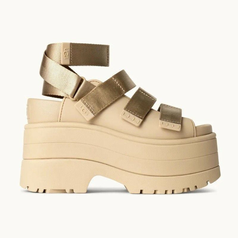 GoldenRise(ゴールデンライズ)は、カスタマイズ可能なストラップが特徴で、スライド、スリングバック、ラップサンダルの3WAYで履くことができます。