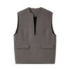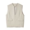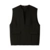 深めのキーネックが印象的な秋仕様のベスト。