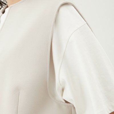 程良くハリを持たせた伸縮性のある素材を使用しており、動きやすく、脱ぎ着がしやすいのもメリット。秋口はTシャツ、冬はニットなど、合わせるインナーによって幅広いシーンやシーズンで着まわせる活躍間違いなしのアイテム。