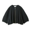 emmiで人気のダンボールニット素材のノーカラーブルゾン。裾にボリュームを出したバルーンデザインがポイント。
