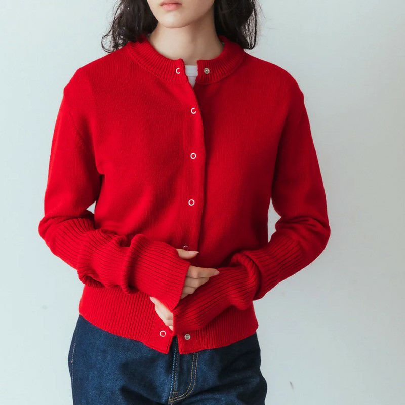 上からベストや半端丈のアウターを羽織って袖を腕・袖をチラ見せするのも良し、フロントのスナップボタンを全閉してプルオーバーとしても、カーディガンとしても、着用いただけるため、着回しの幅が広いアイテム。