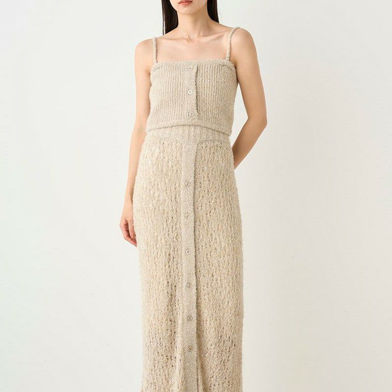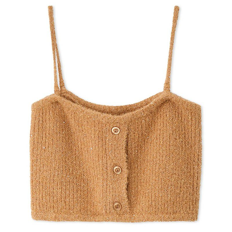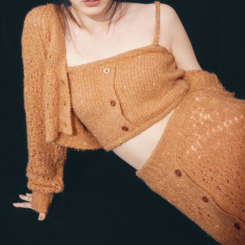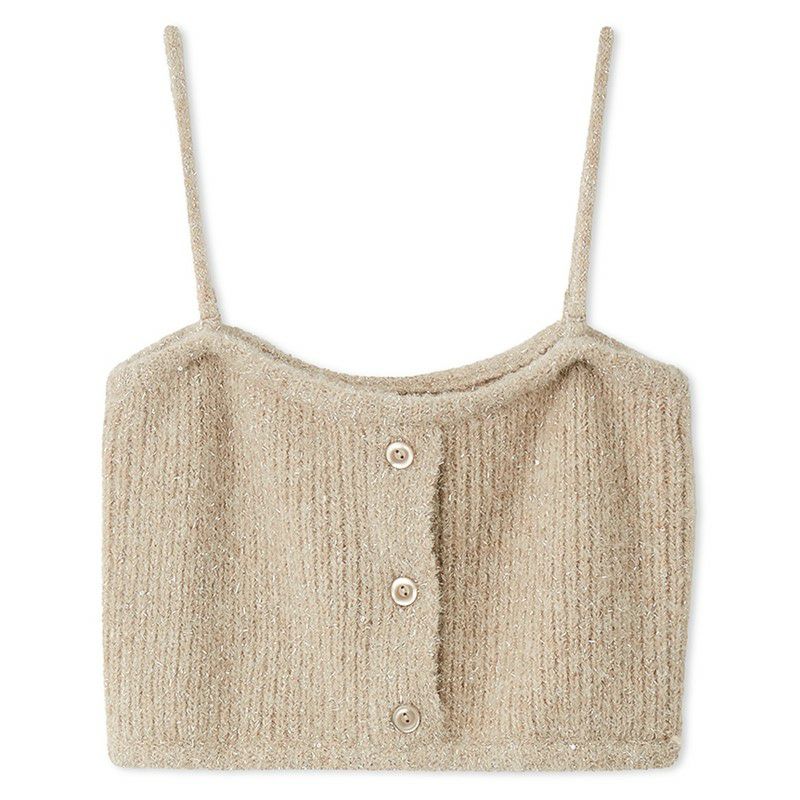 メランジのような配色の糸や、キラキラフィルム糸を使ったファンシーヤーンで編み上げた華やかなベアトップが登場。