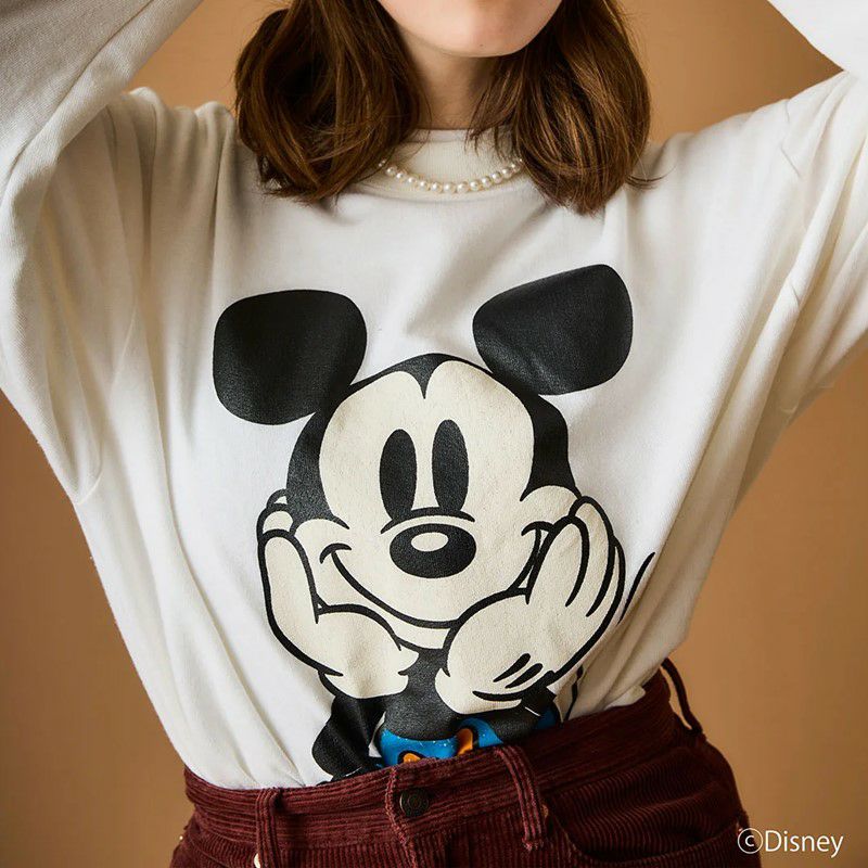 なんといってもポーズが可愛い。プリントは目の引くフロントに大きめに配置。SITTING MICKEYはパンツのカラーをブルー(通称:青パン)にしているのが最大のポイント。