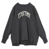バックがフレアシルエットになったお洒落スウェット。スウェットのラフな印象を残しつつ、大人の女性らしいフレアデザインが目を惹きます。