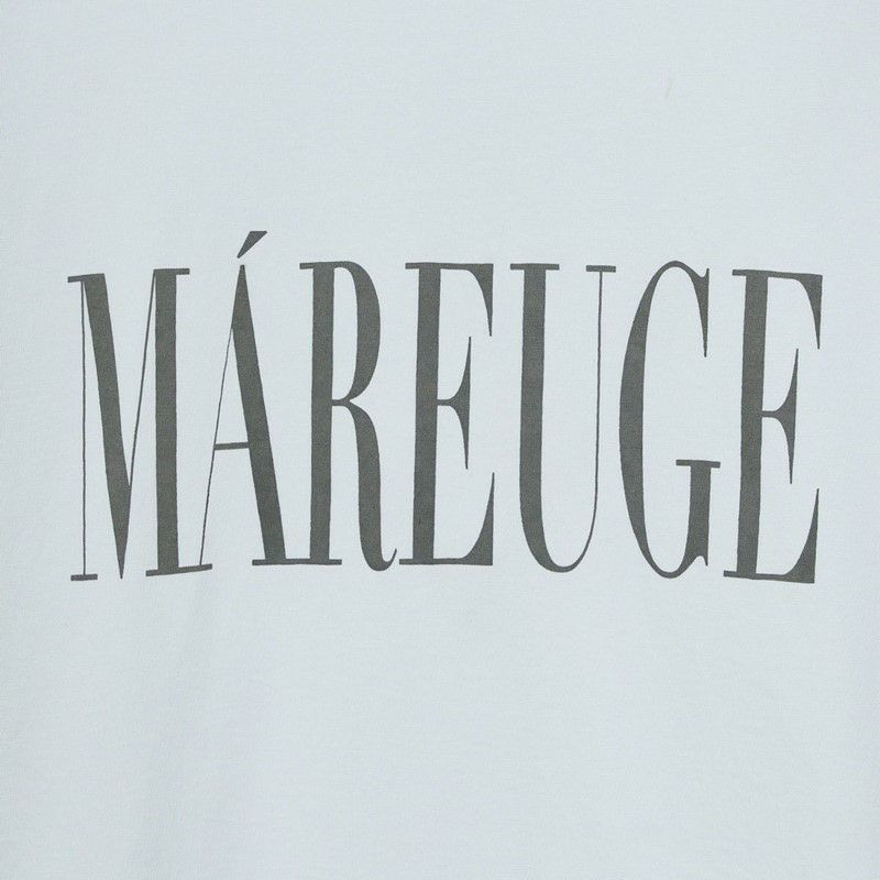 縦長を強調しアクセント記号を付け、あえて読みにくいバランスにこだわったロゴをプリントしたロゴプリントTシャツ。