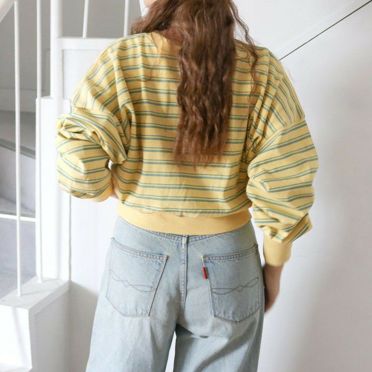 腰くらいの着丈設定でハイウエストのボトムとも相性が良いサイズ感です。