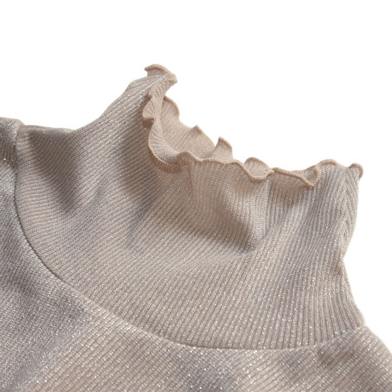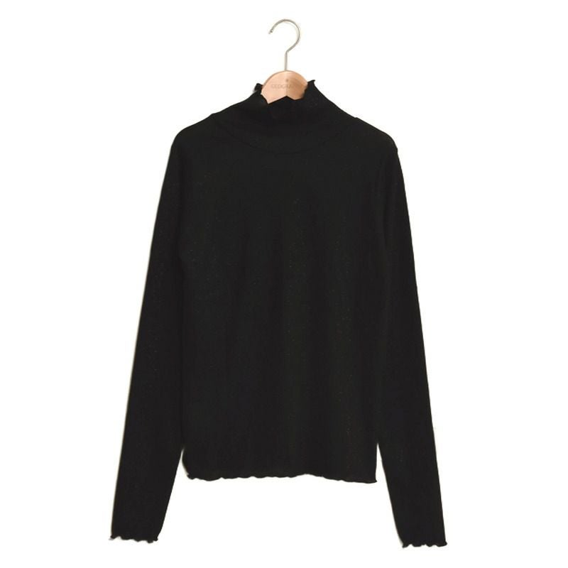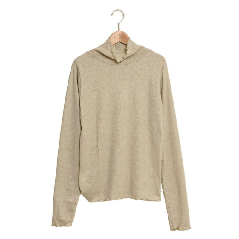 前後どちらでも着用可能な煌めくラメがポイントのタートルトップス。