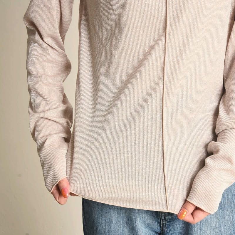 袖口、裾にメロー加工が施されており、レイヤードスタイルでもチラ魅せするだけでちょっとしたこなれ感演出に。