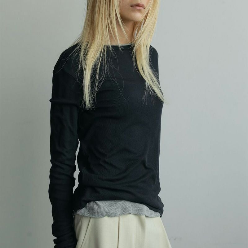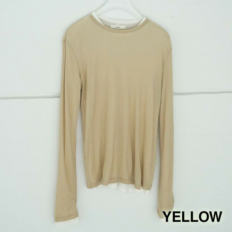 薄手の透け感のあるリブ素材を使用したロングTシャツ。カラーの異なる2枚をレイヤードしたセットアイテムです。主張し過ぎず程良くニュアンスを出してくれる細かなリブ目で、幅広いアイテムと合わせやすい一枚。柔らかな着心地も魅力。コーディネートのアクセントになるカラーと着回しやすいベーシックカラーの2枚を重ね、それぞれ単品使いにもおすすめです。