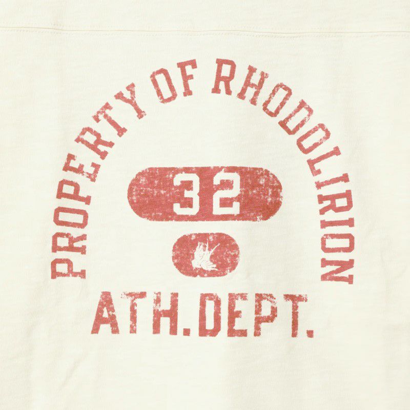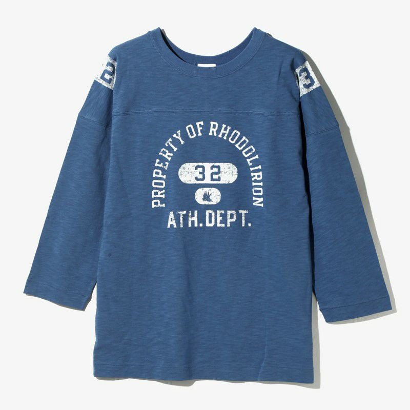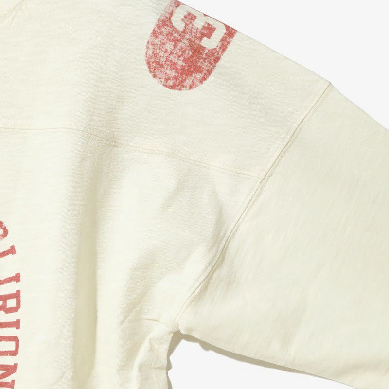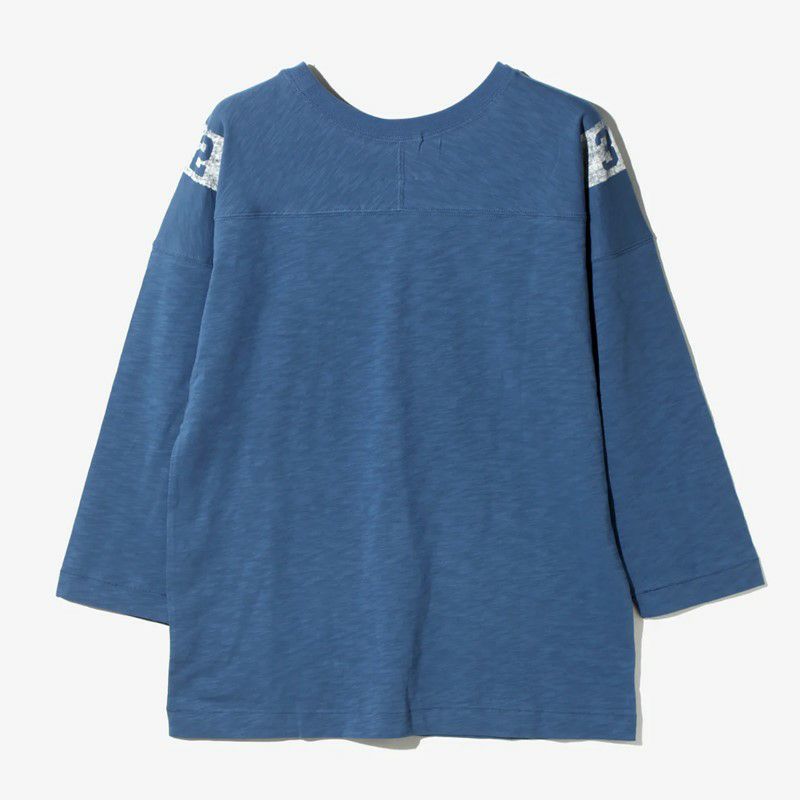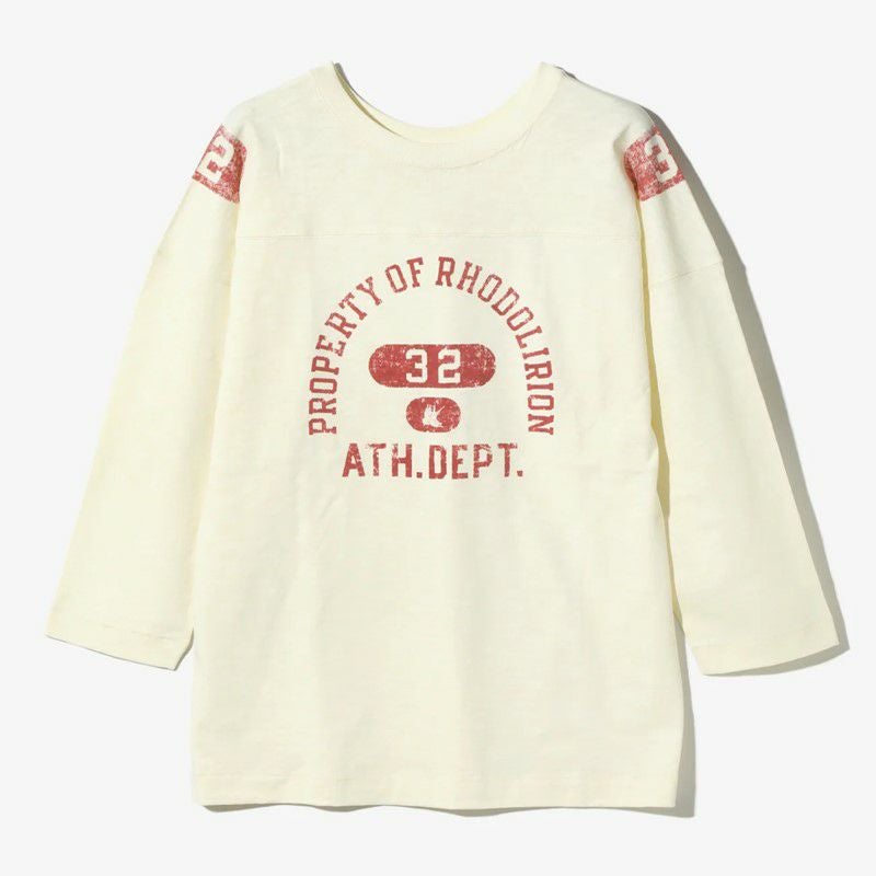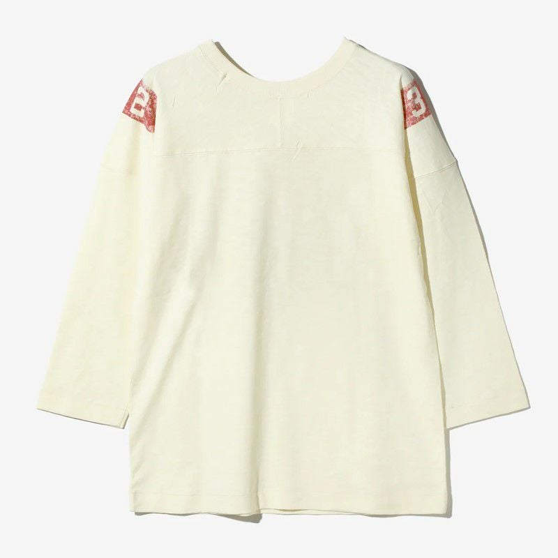 染み込みプリント加工で経年変化の表情が楽しめるプリント手法のオーバーサイズのフットボールTeeです。