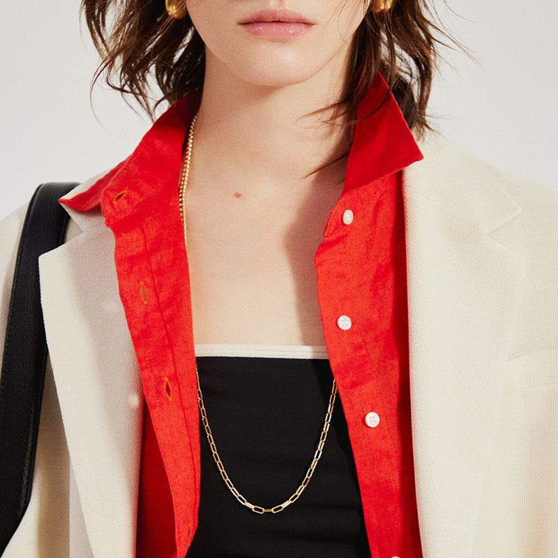 今シーズンは、トレンドのアメスリタンクなどに重ねて羽織るのもおすすめ。