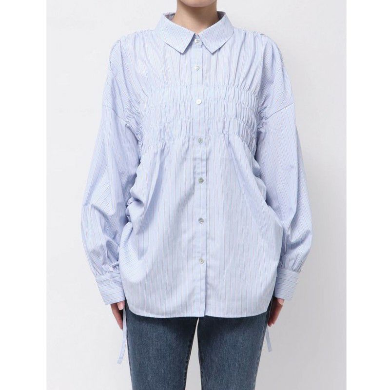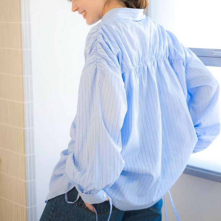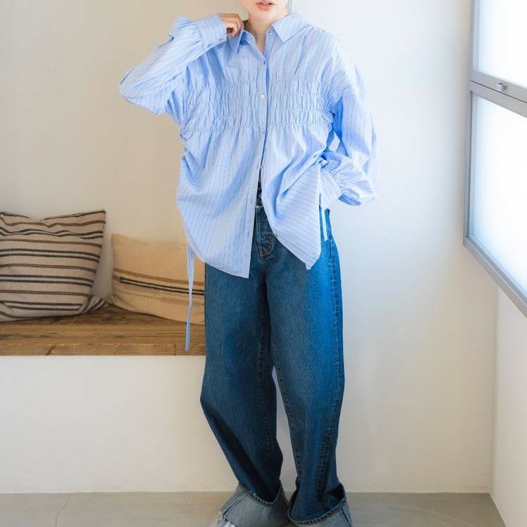 ギャザーがポイントで1枚で映えるルーズシャツ