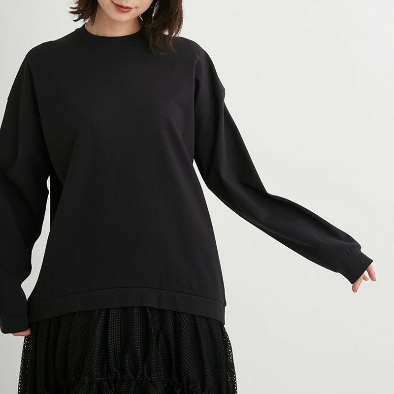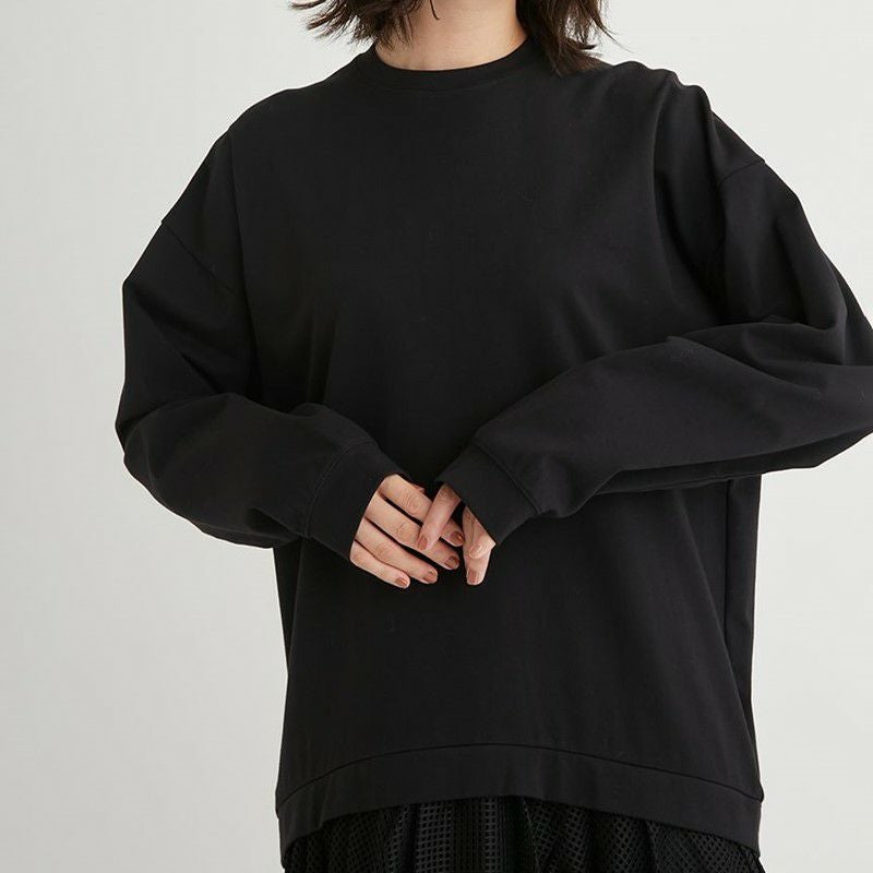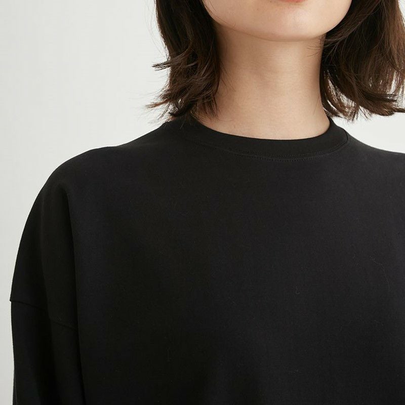 トップス部分はオーガニックコットンを使用しており、しっかりとした中肉の素材感で体のラインを拾いにくくゆるっとしたシルエットがモダンな、長袖Tシャツ。肌触りも抜群です。