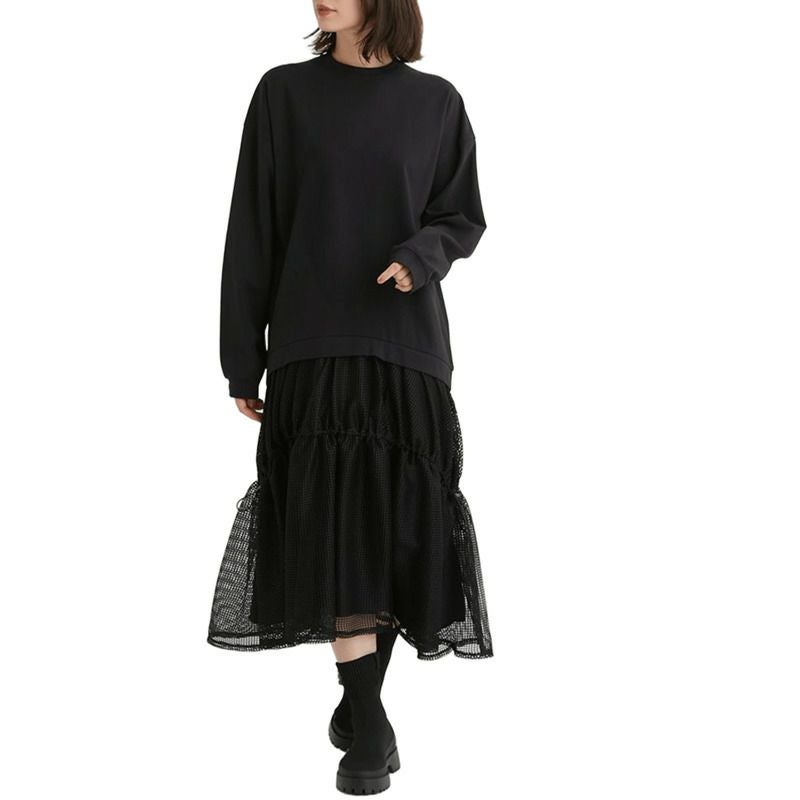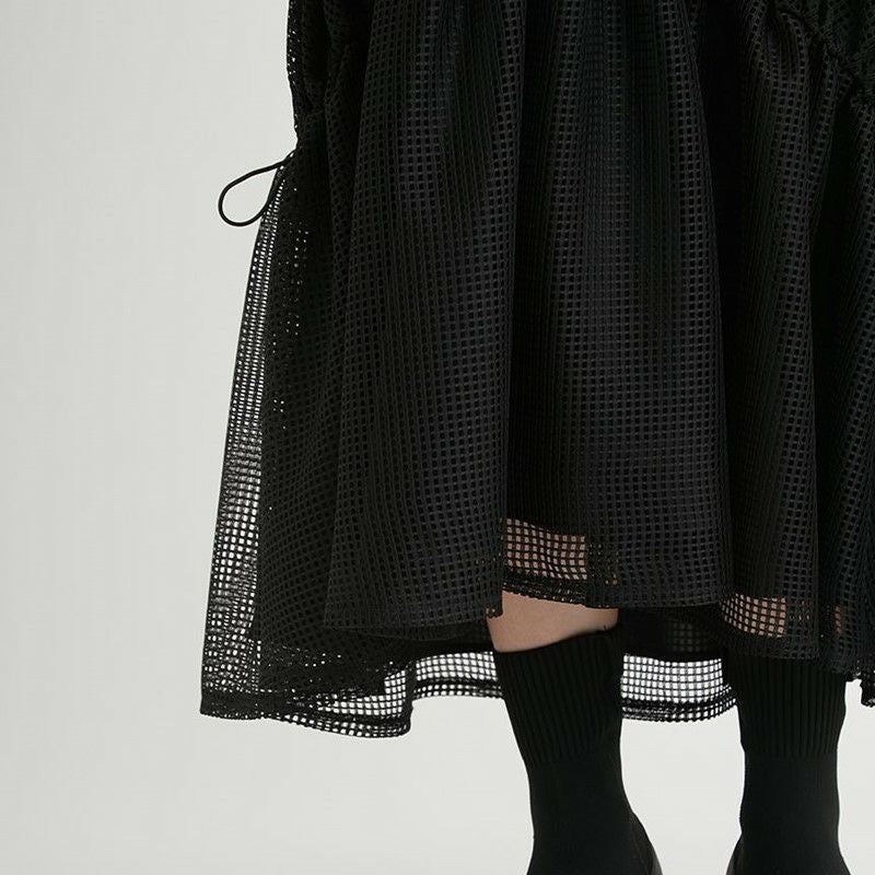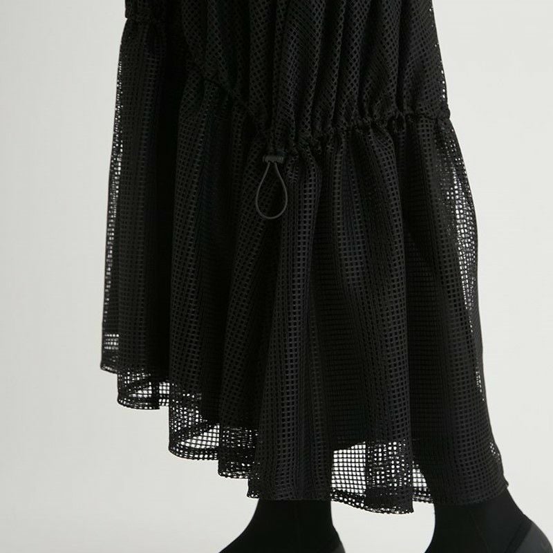 スカートはストンと着られるゆるやかなシルエットと、風通しよく涼やかで着られるメッシュ生地を使用しています。