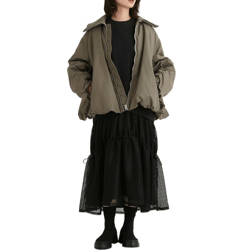 ドローコードを調節してスカートのギャザーを調節可能。シルエットの変化を楽しめるアイテムです。