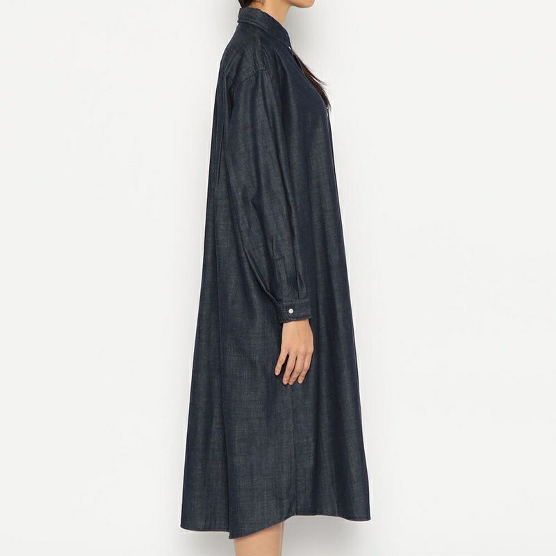 ワンピースとしてはもちろん、ロング丈のシャツカーディガンとしても着用可能です。下のボタンをいくつか開けて、チュールのスカートや柄のパンツを合わせてもオシャレなレイヤードスタイルをお楽しみいただける万能アイテム。