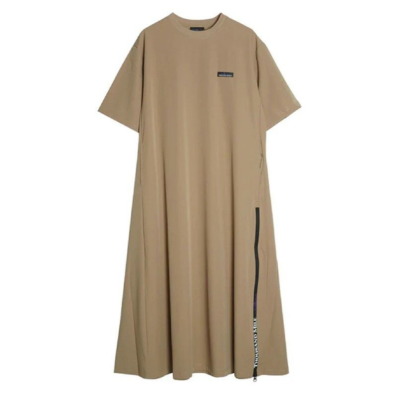 一枚でも十分にお洒落に決まるラクチン半袖ワンピース。
