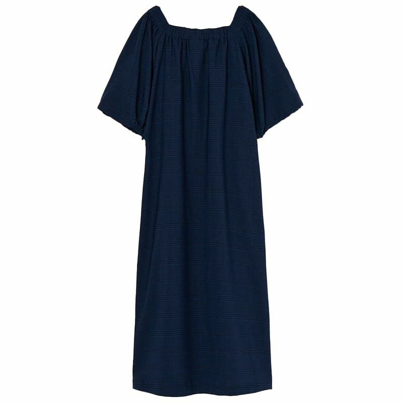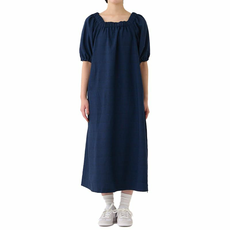 Iラインシルエットが体型を拾いにくいのも嬉しいポイント胸元や肩回りはゴムギャザー入り。