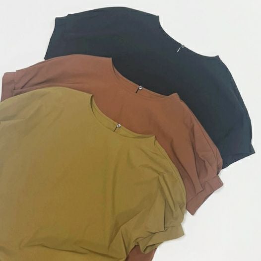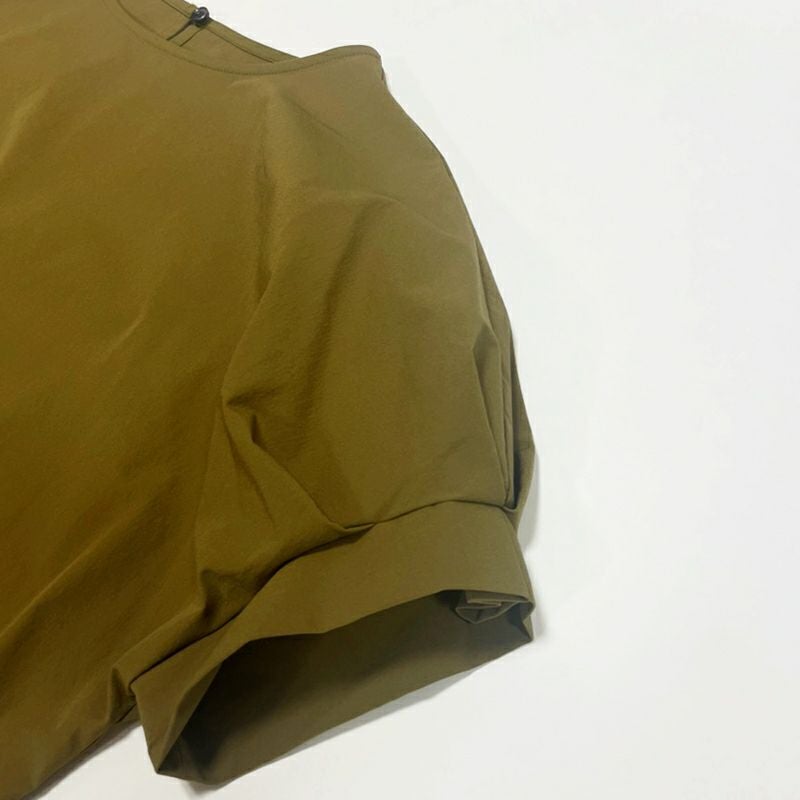 袖タックがポイントで可愛いブラウスをイージーケア対応/接触冷感のある生地に落とし込まれた袖タックカットソー。