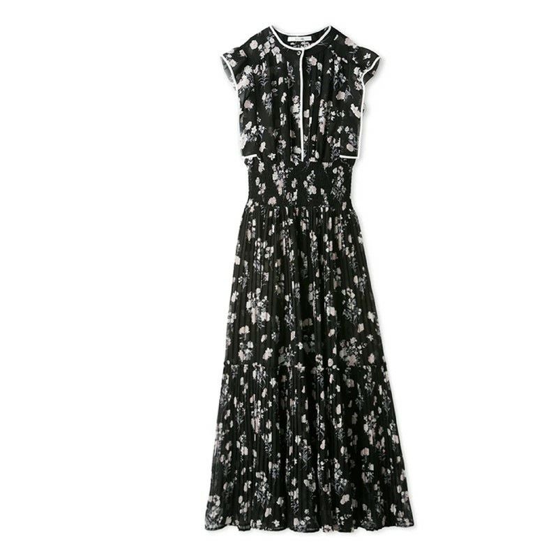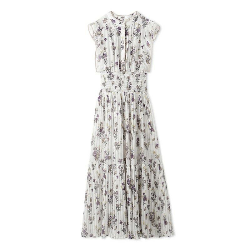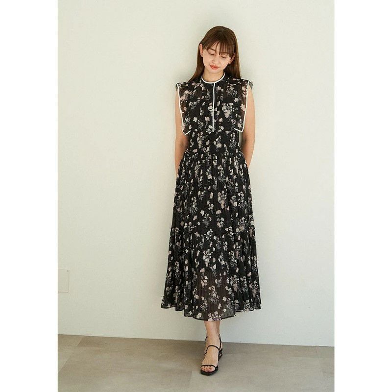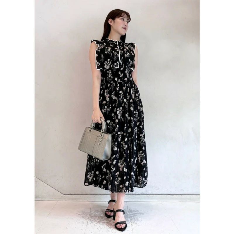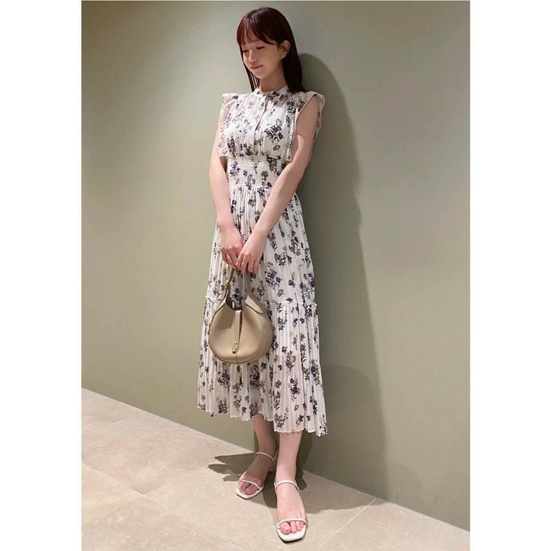 エレガンスなSNIDELオリジナルプリントの草花柄を浮かべたプリーツシフォンワンピース。