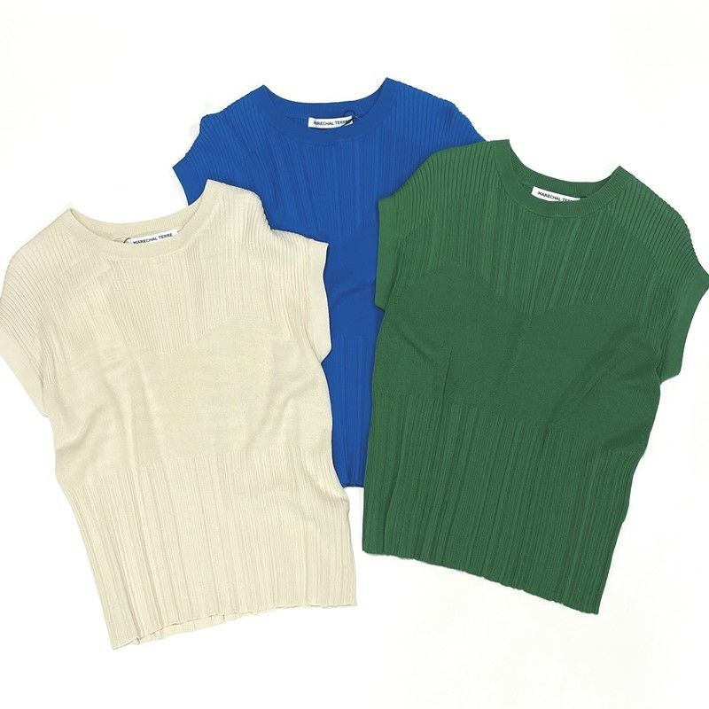 編地の変化でビスチェ風のデザインがお洒落なリブニット。