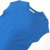 胸元のリブを総針に切り替えてさりげなくビスチェラインが入ったデザイン。ビスチェを強調しすぎない単色のデザインでさりげないディテールがポイント。