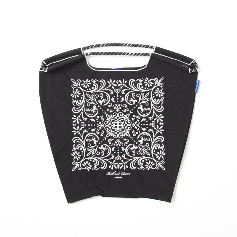 Ball and Chainは大切に使い続けたいと思える優れた デザインのショッピングバッグです。 耐久性、撥水性に優れた厚手のポリエステル素材に、 グラフィックデザインをそのまま「刺繍」で施すことで、 高級感がありデザイン性の高いバッグとなっています。 丸く折りたたみ付属のゴムバンドでとめると手のひらほどの コンパクトサイズになるため、持ち運びにも便利です。 普段のお買い物はもちろん、エコなプレゼントとしてもおススメです。