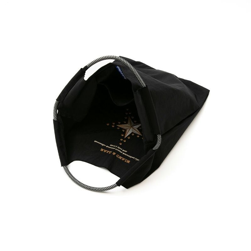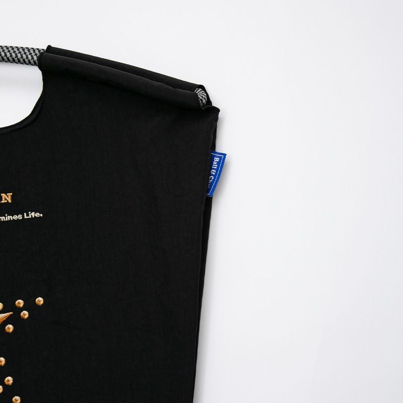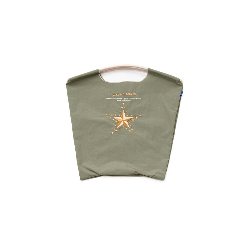 Ball and Chainは大切に使い続けたいと思える優れた デザインのショッピングバッグです。 耐久性、撥水性に優れた厚手のポリエステル素材に、 グラフィックデザインをそのまま「刺繍」で施すことで、 高級感がありデザイン性の高いバッグとなっています。 丸く折りたたみ付属のゴムバンドでとめると手のひらほどの コンパクトサイズになるため、持ち運びにも便利です。 普段のお買い物はもちろん、エコなプレゼントとしてもおススメです。