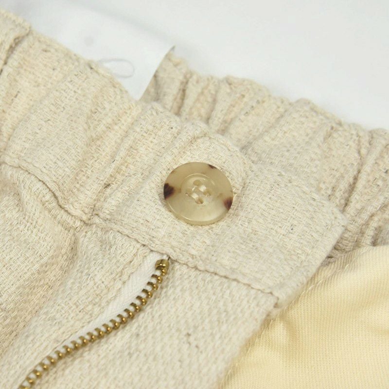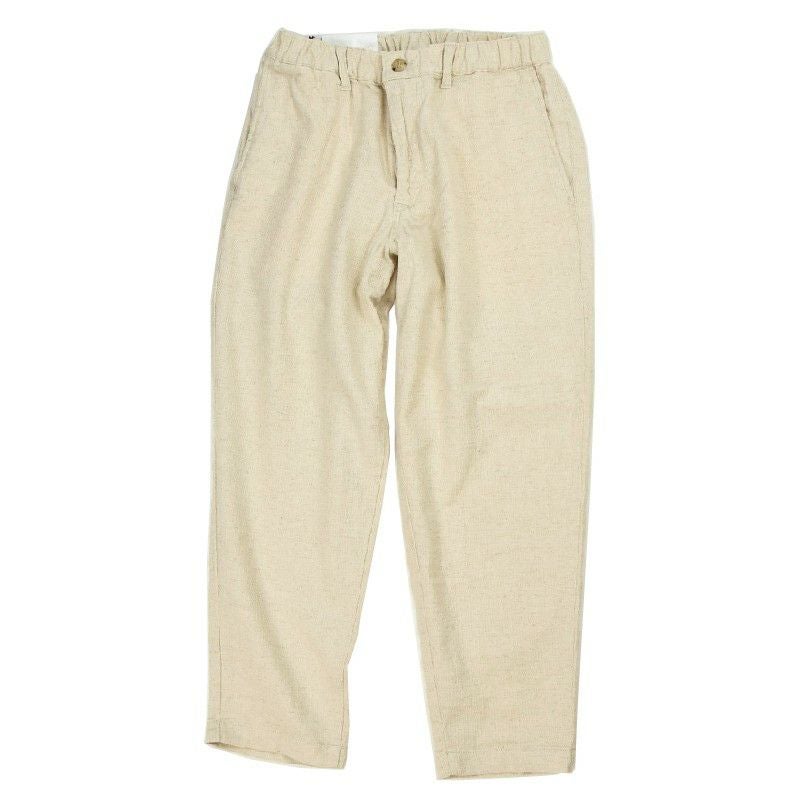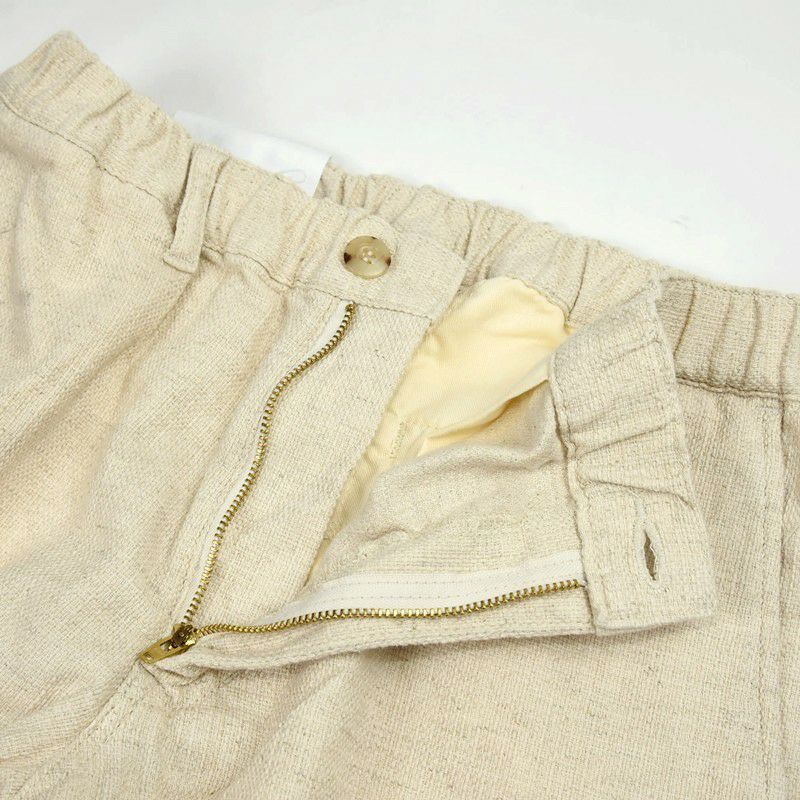 綿と麻ならではの凹凸感のある表情が涼し気かつ、ラフ過ぎない印象を与えてくれます。ベルトループ付きでインスタイルでもかっこよく決まるおすすめの一本です。