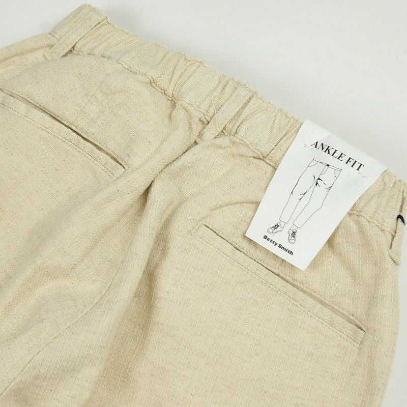 綿と麻ならではのナチュラルな表情がお洒落見えしてくれる、テーパードパンツ。