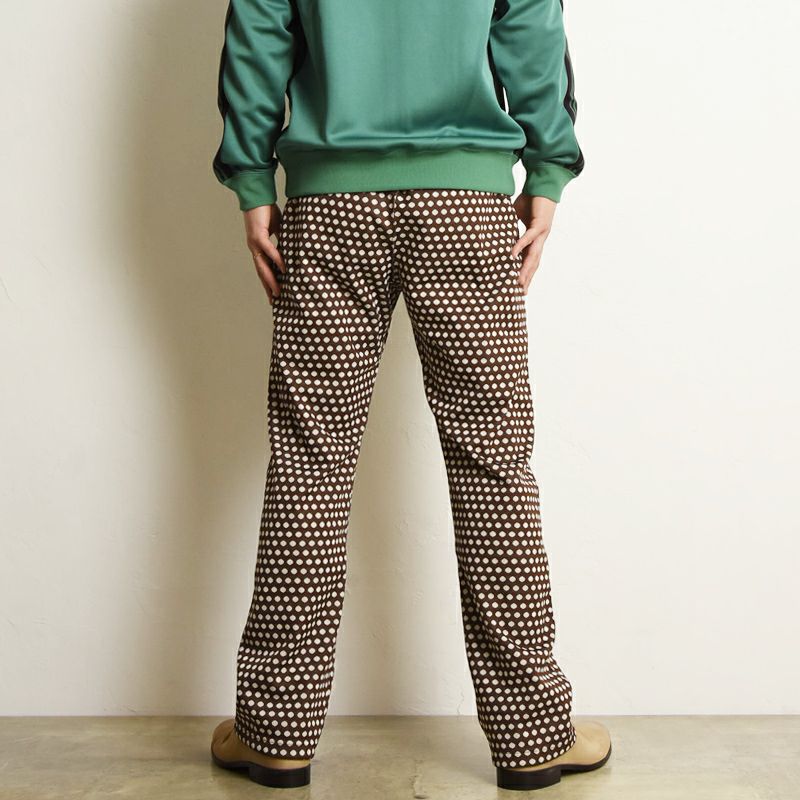 定番人気の総柄パターンのトラックパンツ。