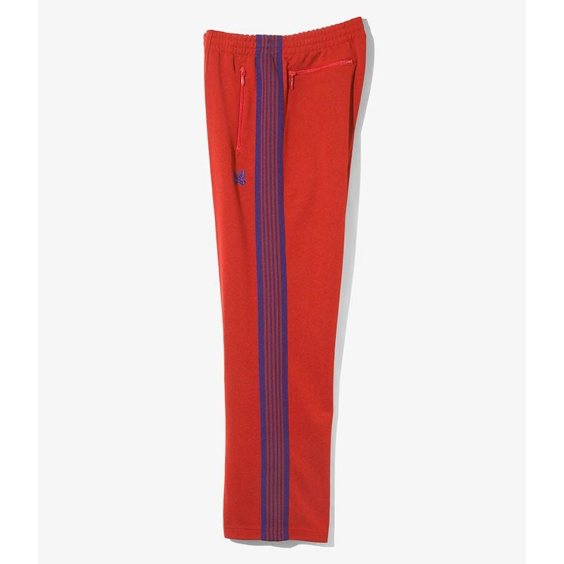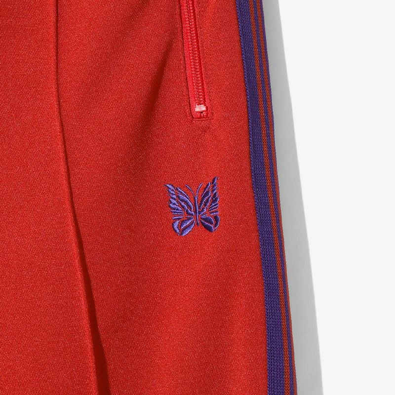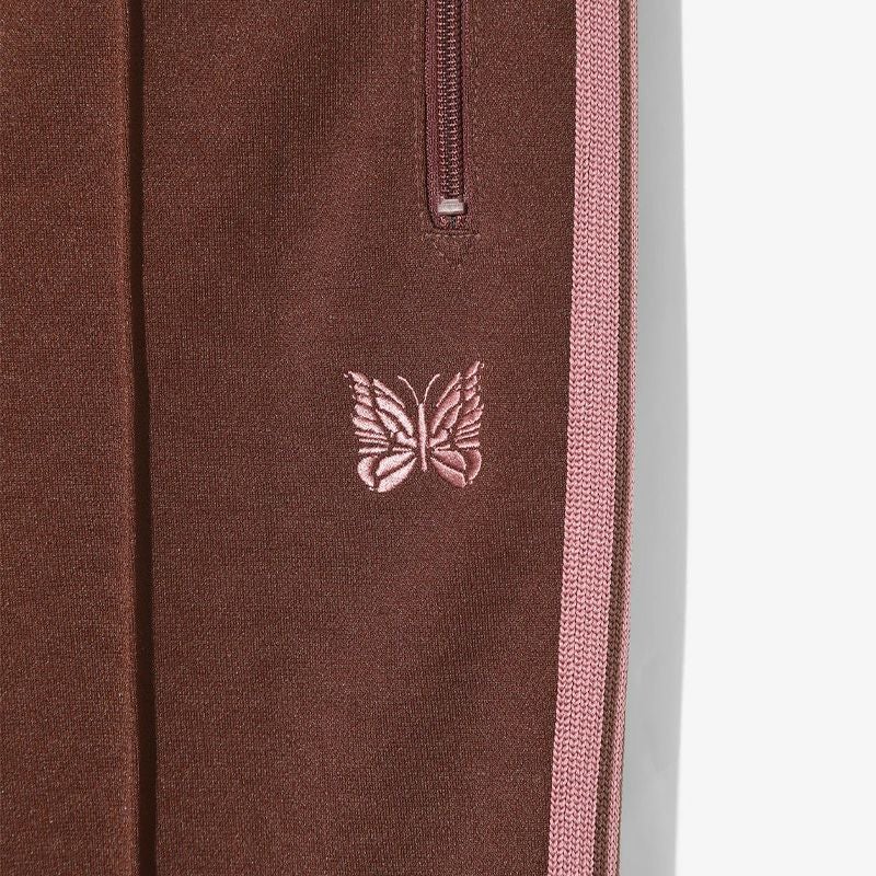 〈NEEDLES〉定番のトラックパンツが25年秋冬シーズンの新色で登場。今シーズンはブラウン、グリーン、レッドの全3色です。伸縮性や通気性に富んだポリエステルジャージー素材を使用した快適性に優れたアイテム。独特の配色や刺繍デザインなど、一般的なスポーツウェアとは一線を画した華やかなファッション性が魅力となっています。豊富なシルエットのバリエーションで展開されておりますが、最もオーソドックスなややワイドなストレートシルエットです。