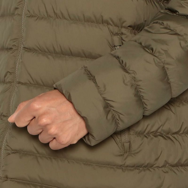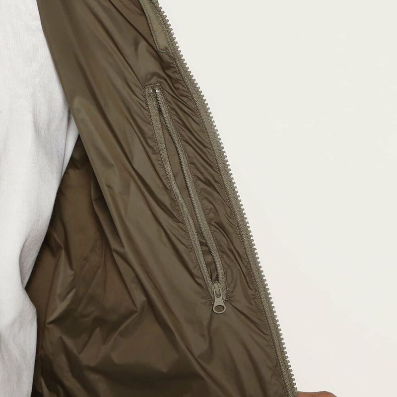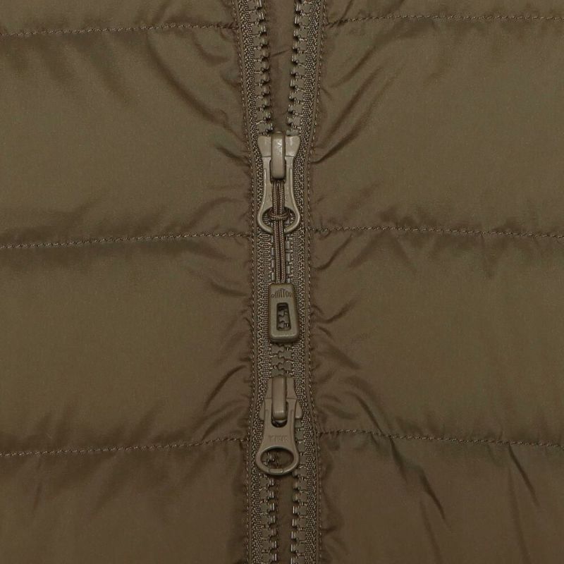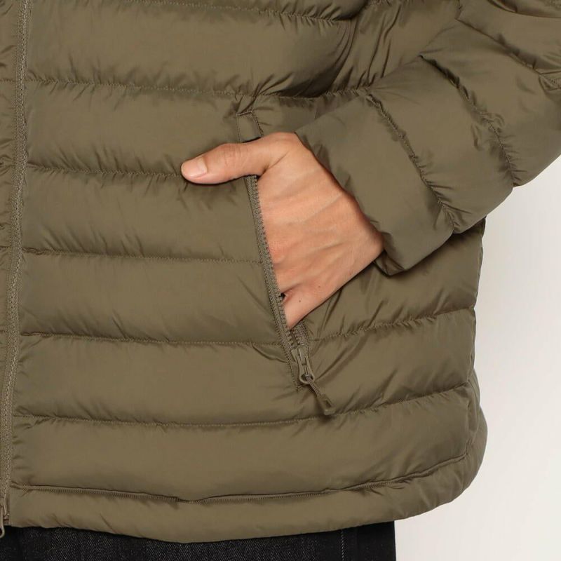 インナーダウンよりも肉厚で、アウターダウンほど嵩張らない絶妙なボリュームです。裾部分にはゴムスピンドルを配備しており、絞ることで冷気の侵入を防ぎ、体内の熱を逃がしません。