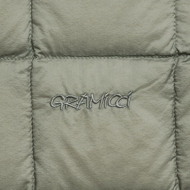 左胸のGramicci刺繍がアクセントに。表面は微凹凸生地を使用しており、独特な肌触りはアウトドアシーンを彷彿させます。800フィルパワーの良質なダウンを採用したシンプルながら完成度の高いアイテムに。