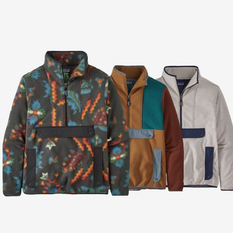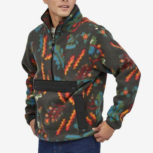 軽量で快適なリサイクル・ポリエステル100%のシンチラ・フリースの端切れを再利用し、伝統的なデザインにならった温かく快適なフリース製アノラック。