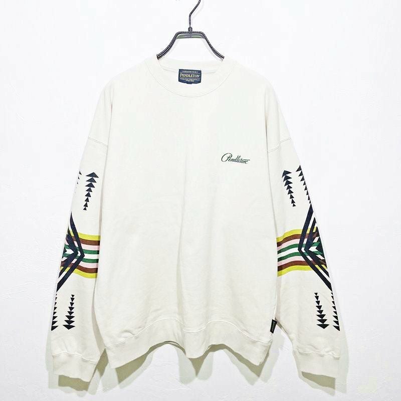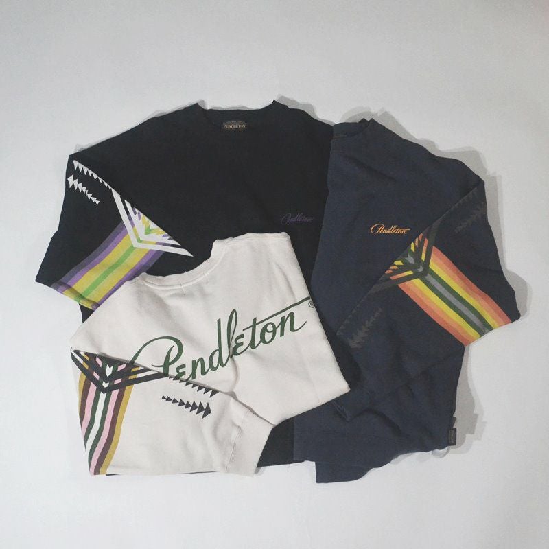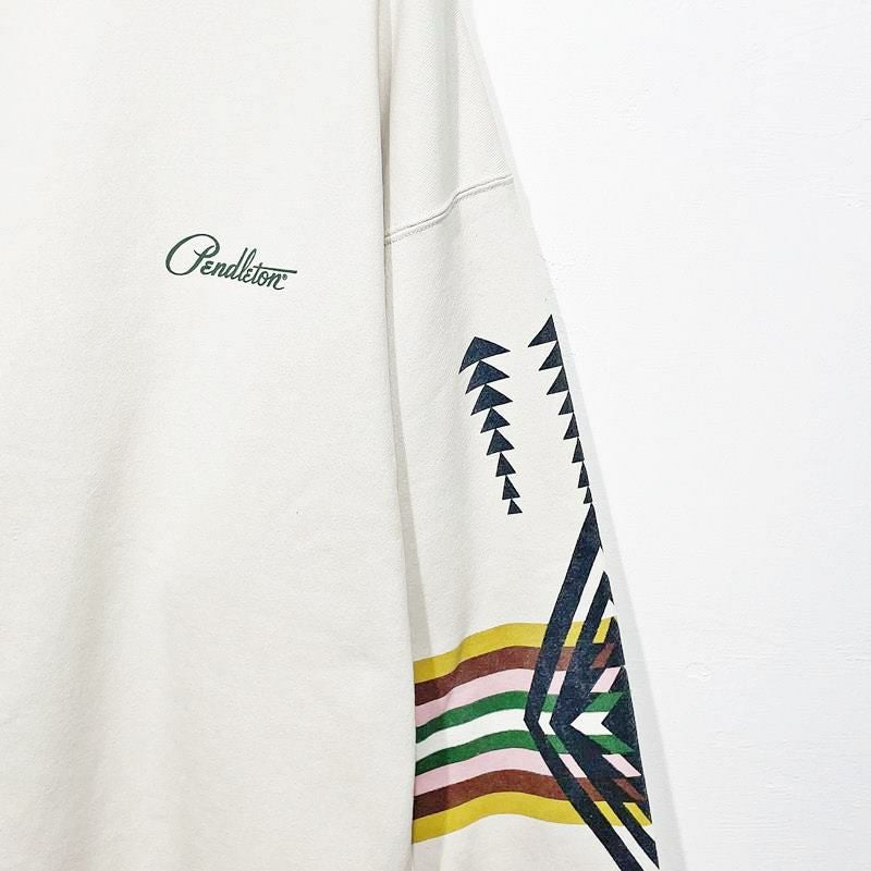 ペンドルトンのブランドロゴがバックプリントされている風合いあるトレーナー。