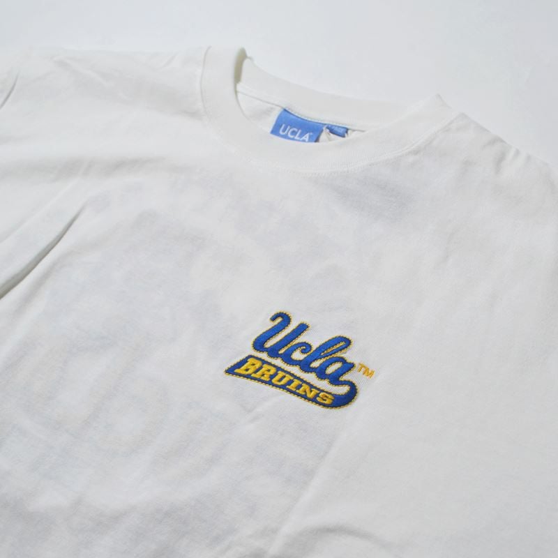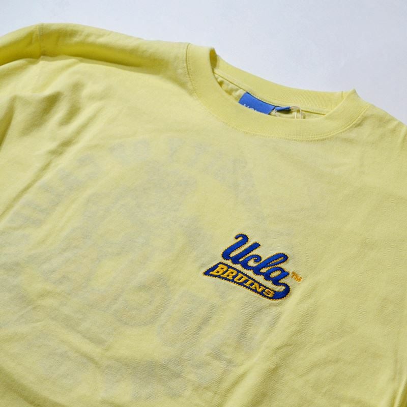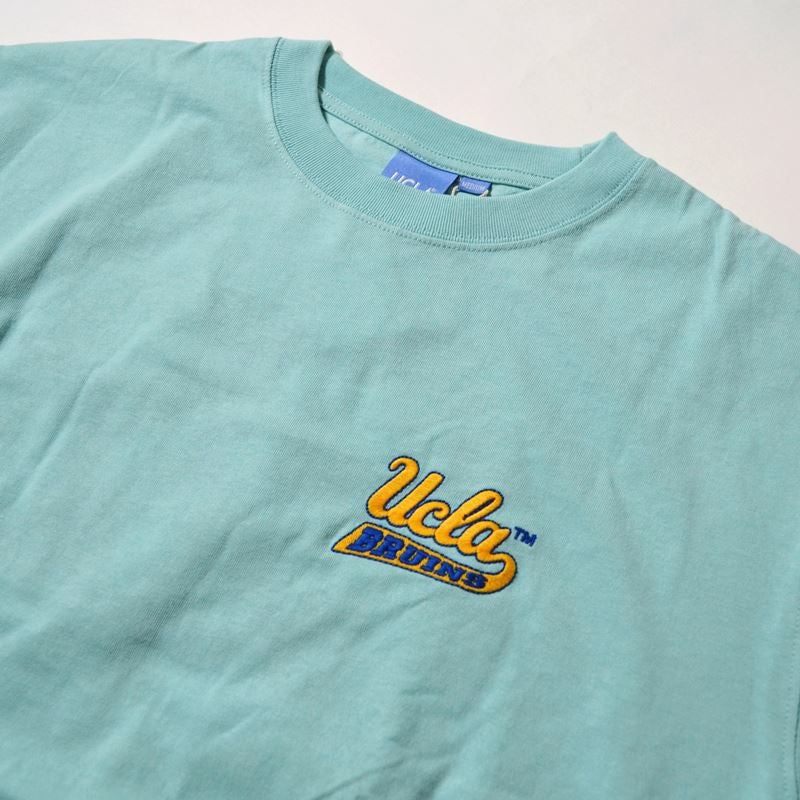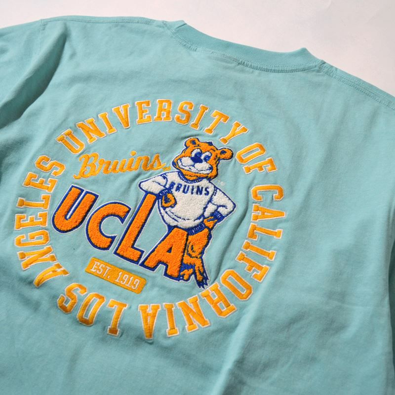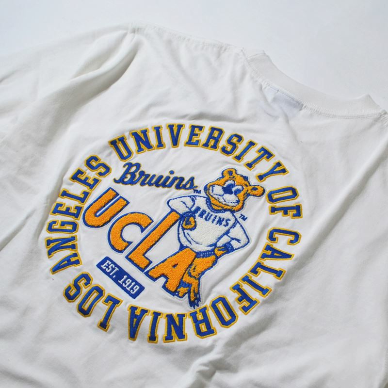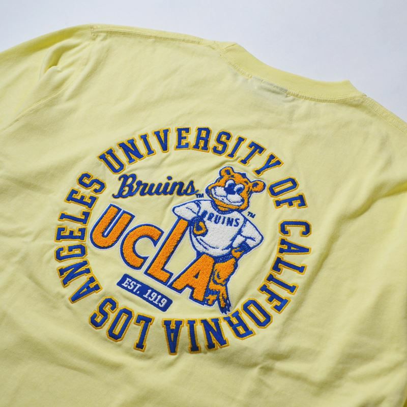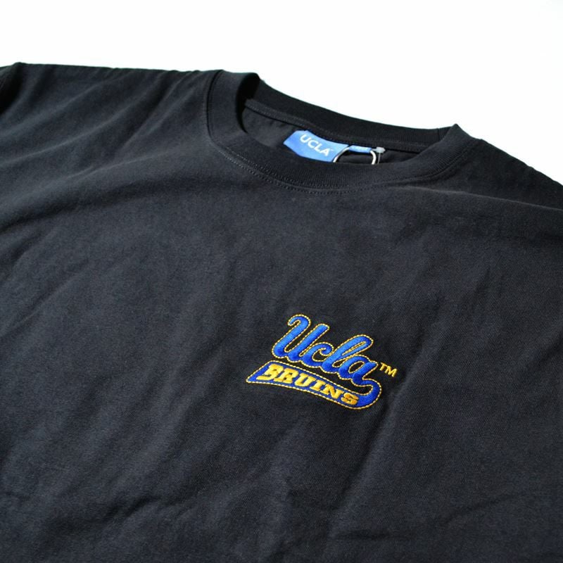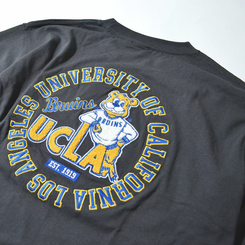 UCLAのロゴにブルーインズが肘をおいてポーズをとるキャッチーなデザインが特徴。バックデザインは立体感のあるサガラ刺繍デザインで表情豊かな仕上がりに。