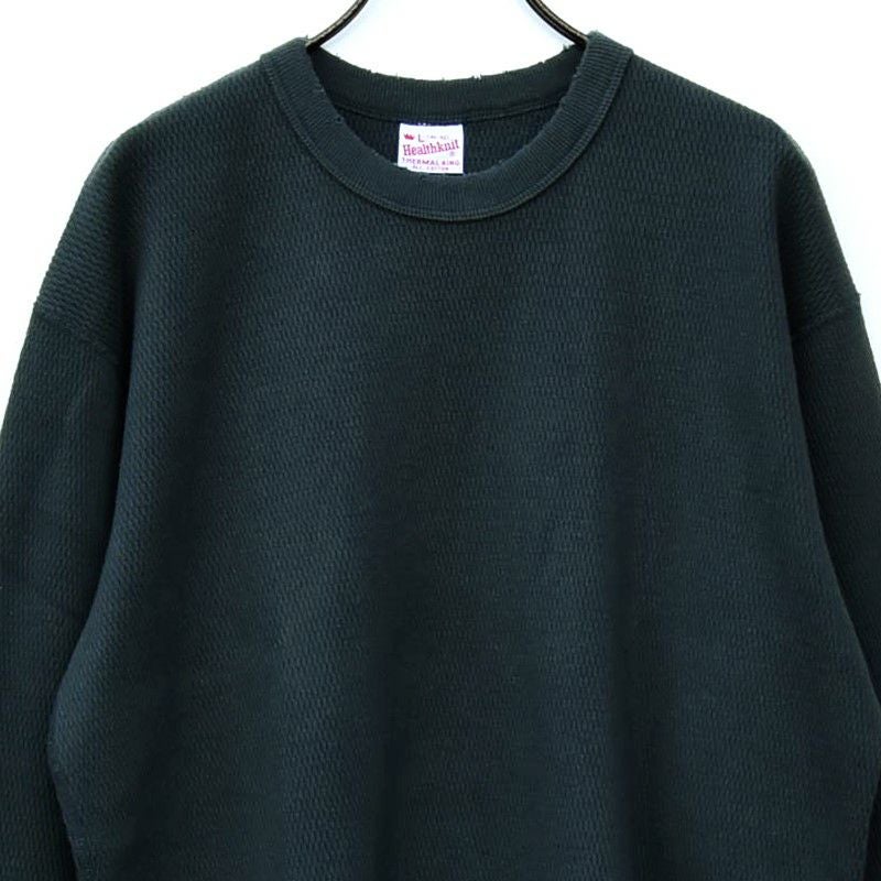 サーマルキングワッフルを現代にアップデートした生地を使用したサーマルキング ラッセル ハニカム クルーネックは、まるで蜂の巣のような立体的な編み地が最大の特徴。