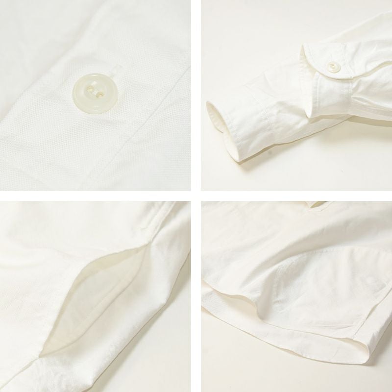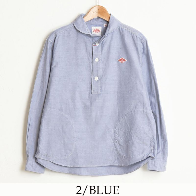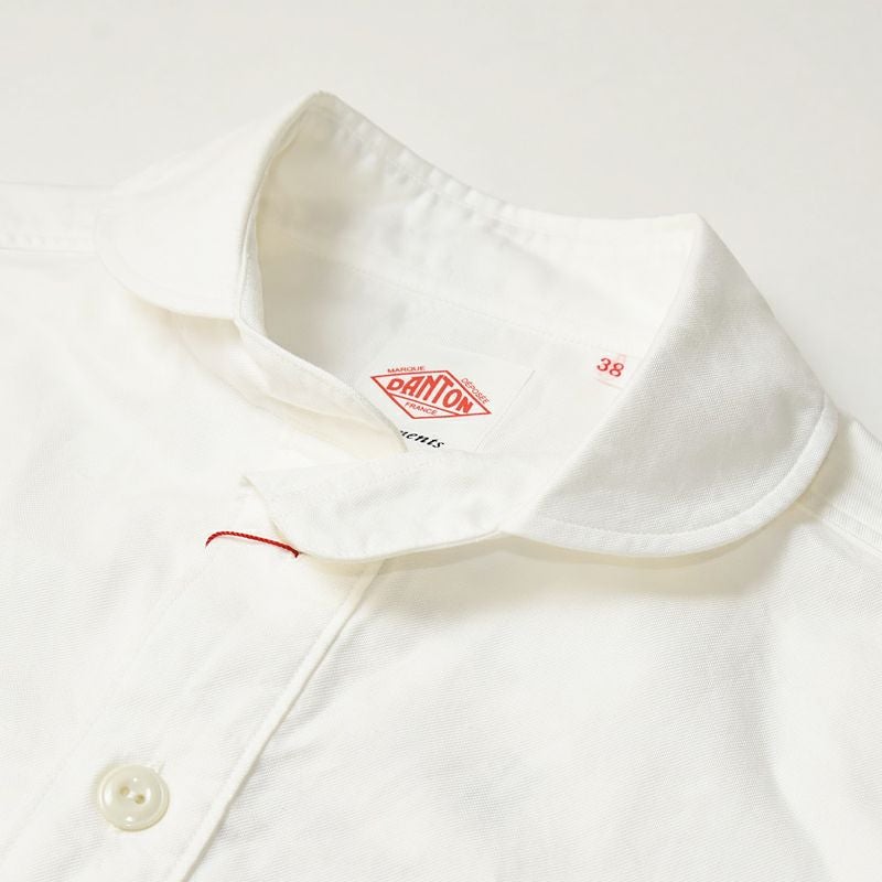 こちらは、DANTON定番の丸襟プルオーバーシャツです。しっかりと目の詰まったオックスフォード生地は洗いがかっているので、程よくハリが残った柔らかい着心地が特徴です。コンパクトな丸襟が可愛らしく、クラシカルな雰囲気を演出してくれます。両サイドには丸いステッチの入ったポケットが特徴です。シンプルで着回しが効く一枚です。
